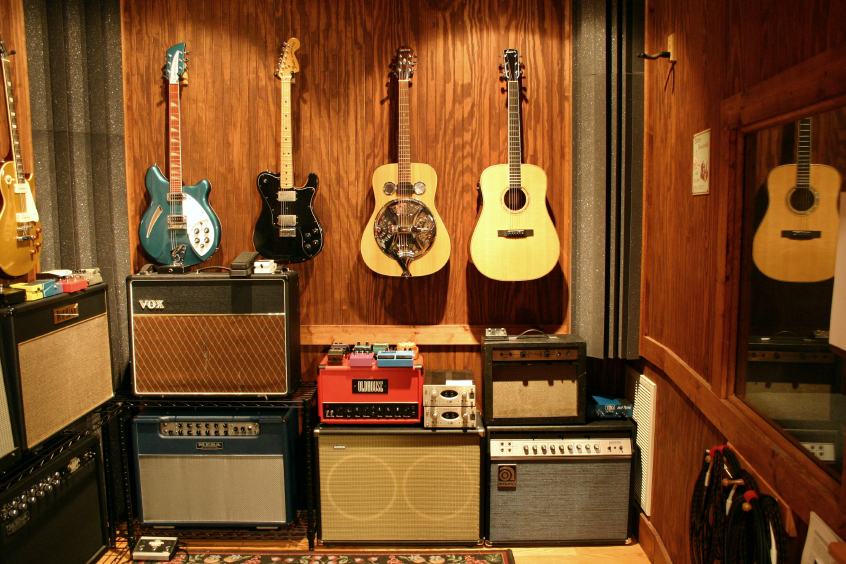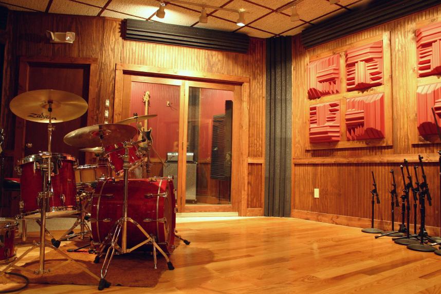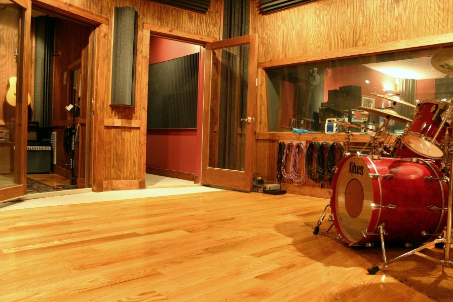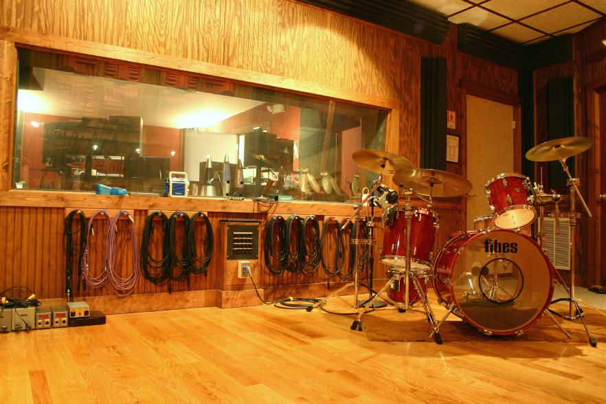 The control room at Old House provides a relatively even listening enviroment between the client couch and the console mix position. While the control room exhibits reduced reflected energy at both positions, the room is not so absorbent as to seem acousticaly "dead." The control room is approximately 15 feet wide and 18 feet deep, with plenty of room for a band or other compliment of interesting people to relax and listen to music. There are a variety of monitors available for comparative listening and a large, comfortable couch at the back of the room. Overhead and wall-mounted control room lights are on several different switches, providing a variety of lighting options independent of the fascinating lights on the equipment itself. The control room was constructed on a separate floating surface from the performance area and lounge, reducing transmission of low frequency sounds that would otherwise pass through the floor. A specific list of control room equipment is available here.